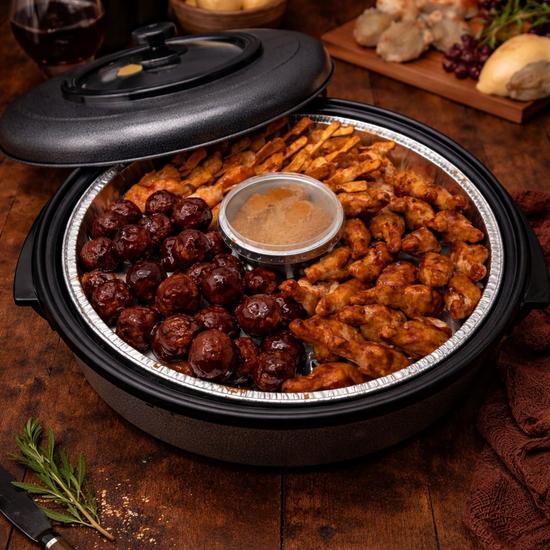 Bestel minimaal 2 dagen van tevoren! 80 hapjes. Gevuld met 3 soorten naar keuze: Ketjap balletjes, kipknots, mini kipsaté, spareribs, Indische balletjes in saus
