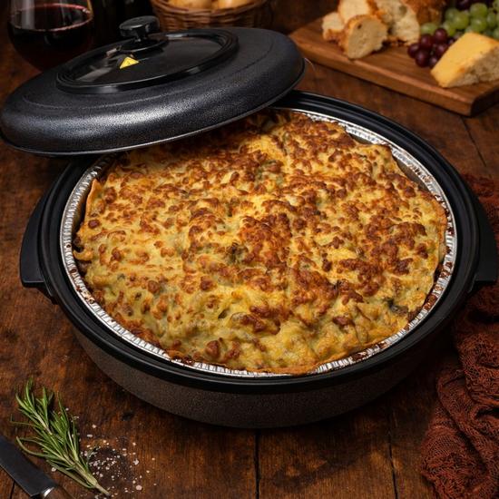 Bestel minimaal 2 dagen van tevoren! Voor 6 personen. Gevuld met: shoarmavlees, krieltjes, gesmolten kaas, knoflooksaus